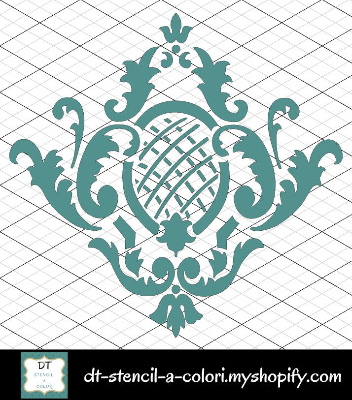 Lo stencil è creato su fogli in polipropilene ideali sia per lavori pittorici che materici. I fogli sono di colore bianco opaco, ma si possono richiedere anche trasparenti opachi, basta che mi mandiate un messaggio.