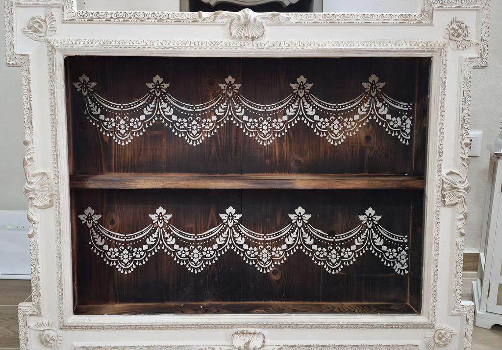 Inoltre vi invito caldamente a iscrivervi alla pagina Facebook “Mon Rever Shabby Clay Paint”. Troverete tanti video utili che vi faranno vedere come vengono usati questi prodotti, scoprirete i trucchi del mestiere e vedrete anche tutte le realizzazioni con i miei stencil.
