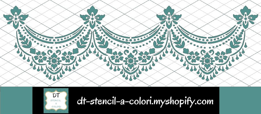 Lo stencil è creato su fogli in polipropilene ideali sia per lavori pittorici che materici. I fogli sono di colore bianco opaco, ma si possono richiedere anche trasparenti opachi, basta che mi mandiate un messaggio.