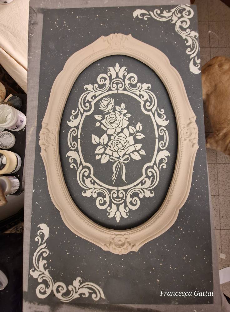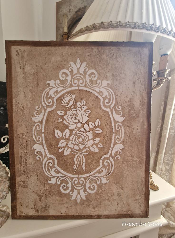 Inoltre vi invito caldamente a iscrivervi alla pagina Facebook “Mon Rever Shabby Clay Paint”. Troverete tanti video utili che vi faranno vedere come vengono usati questi prodotti, scoprirete i trucchi del mestiere e vedrete anche tutte le realizzazioni con i miei stencil.