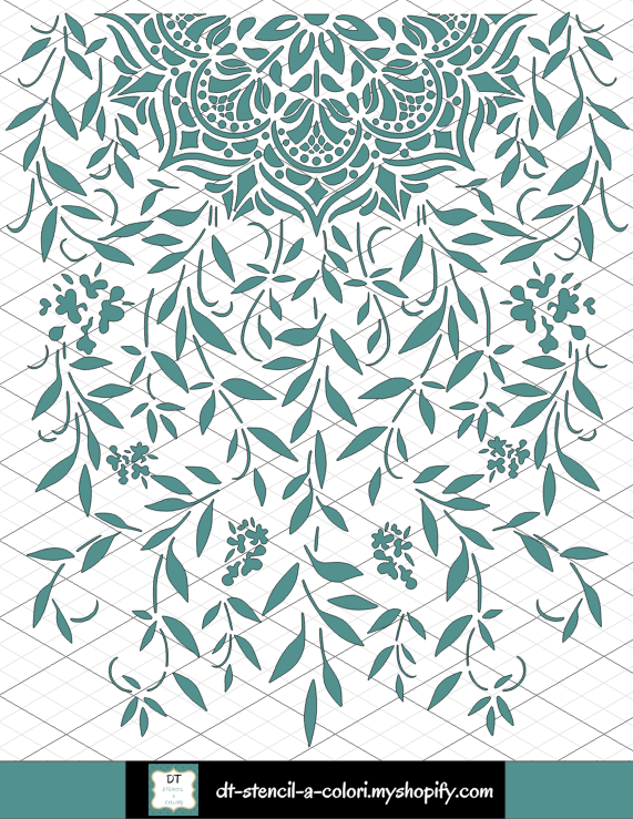 Lo stencil è creato su fogli in polipropilene ideali sia per lavori pittorici che materici. I fogli sono di colore bianco opaco, ma si possono richiedere anche trasparenti opachi, basta che mi mandiate un messaggio.