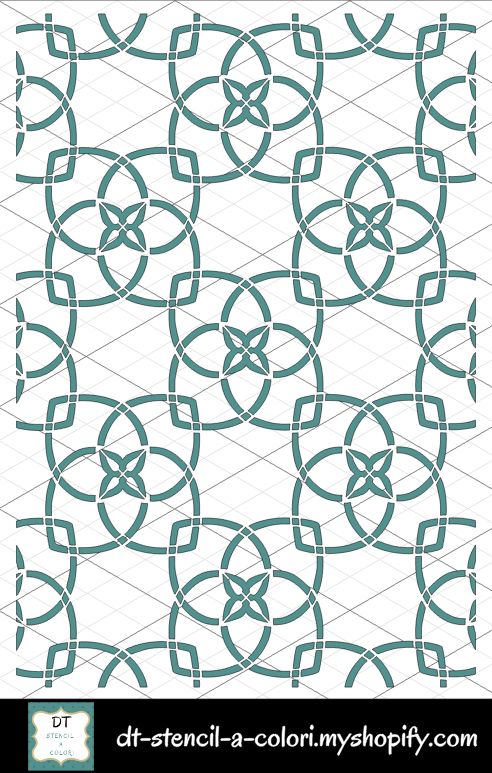 Lo stencil è creato su fogli in polipropilene ideali sia per lavori pittorici che materici. I fogli sono di colore bianco opaco, ma si possono richiedere anche trasparenti opachi, basta che mi mandiate un messaggio.