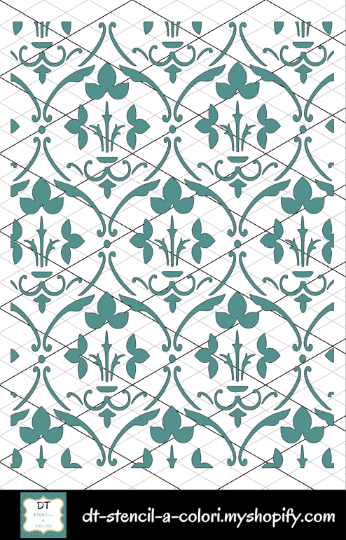 Lo stencil è creato su fogli in polipropilene ideali sia per lavori pittorici che materici. I fogli sono di colore bianco opaco, ma si possono richiedere anche trasparenti opachi, basta che mi mandiate un messaggio.